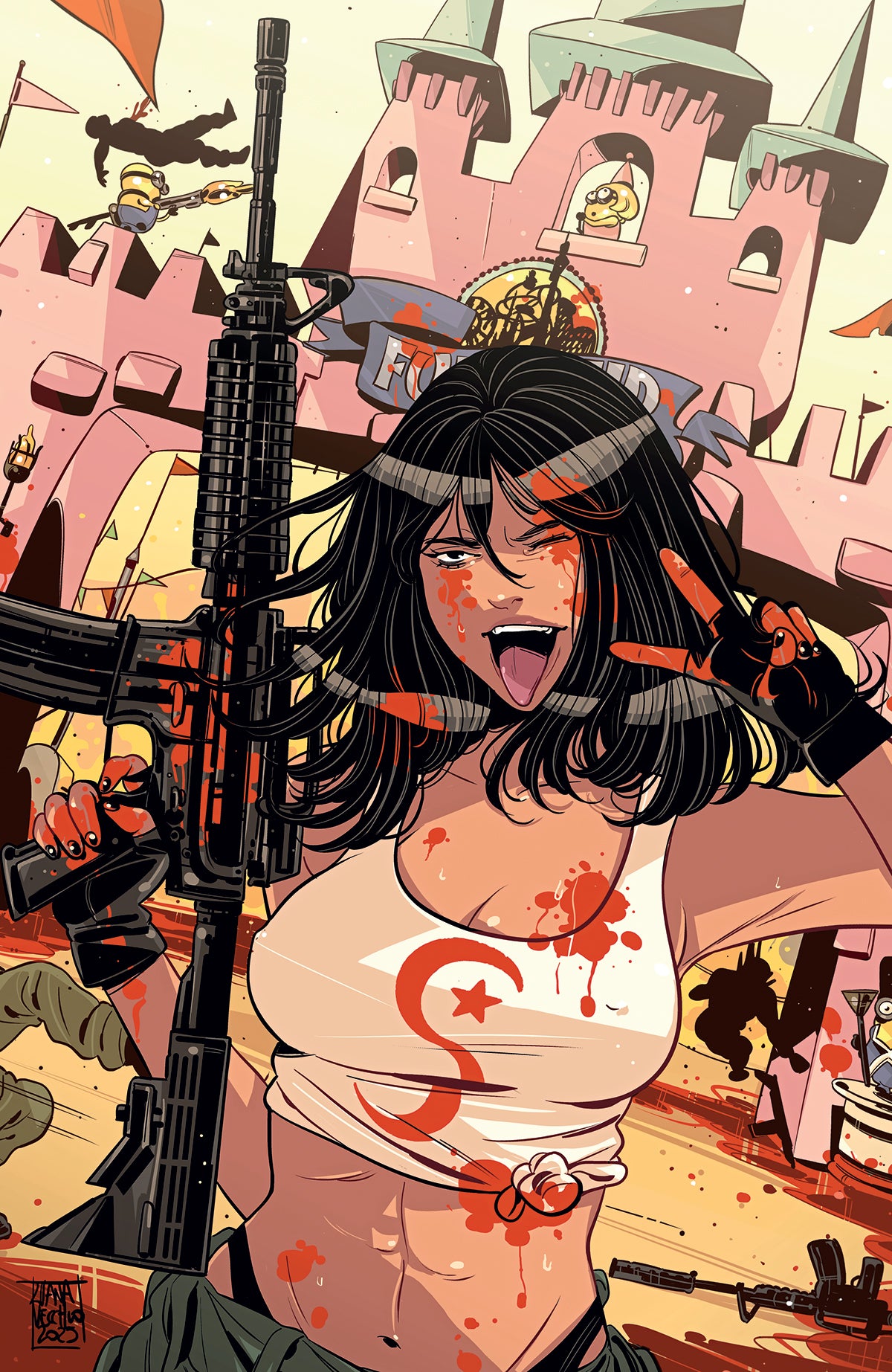 “Calexit, the seemingly ripped-from-the-headlines comic… is set in a near (and eerily familiar) future where America’s president signed an executive order to deport all immigrants, with California responding by proclaiming itself a sanctuary state. As the citizens of the state struggle to seize power back from an autocratic government, the story centers on Jamil, a war zone courier/smuggler, and Zora, a young leader in the Mulholland Resistance, who attempt to escape Occupied Los Angeles, a city under martial law... proving to be more timely than ever.”